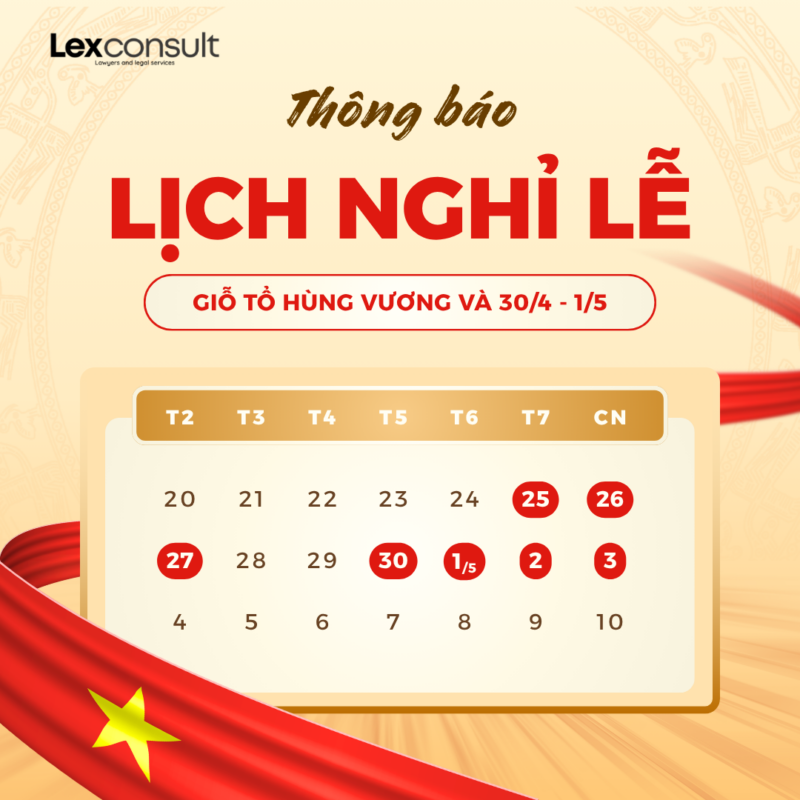 Công ty Luật TNHH Lexconsult & Partners xin trân trọng thông báo đến Quý Khách hàng và Quý Đối tác lịch nghỉ lễ như sau: